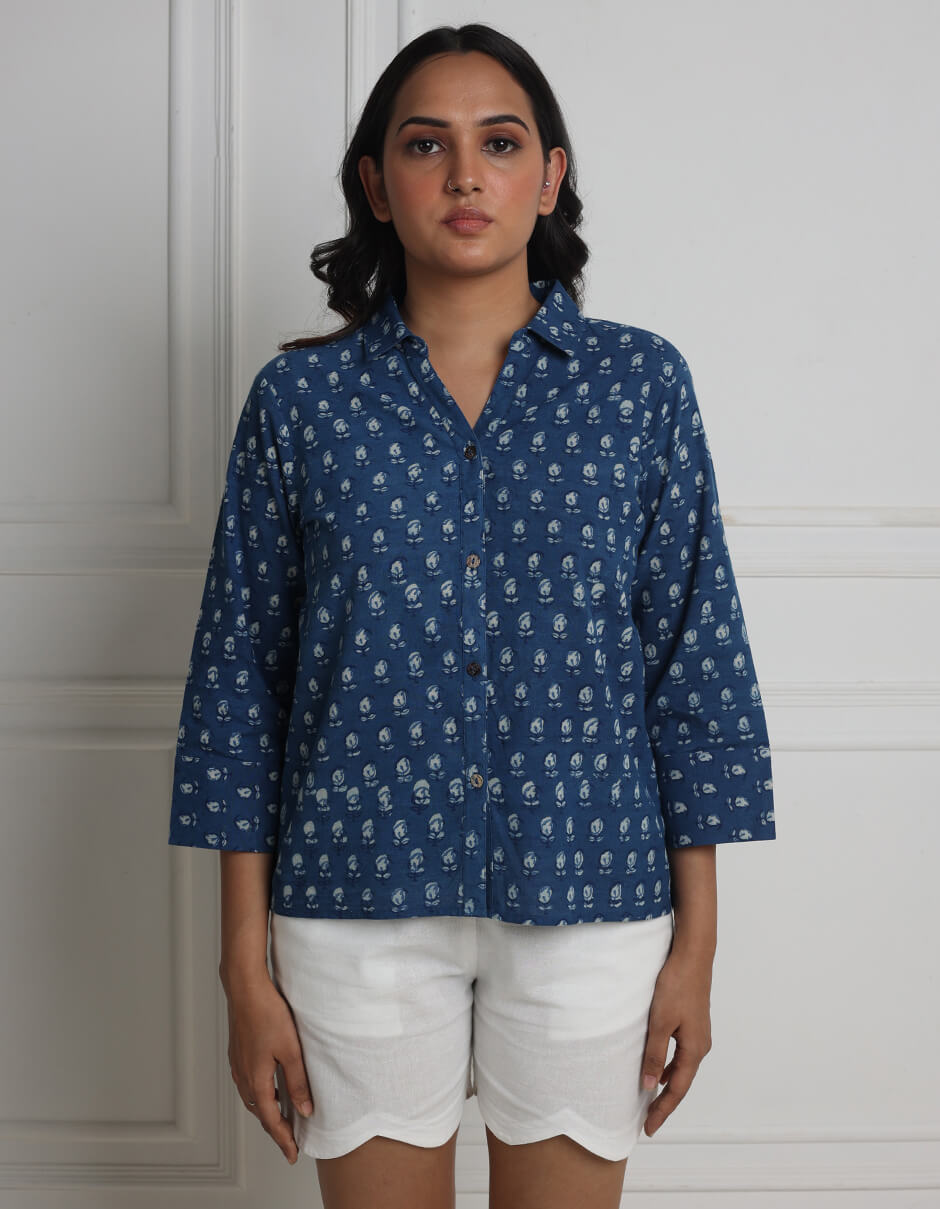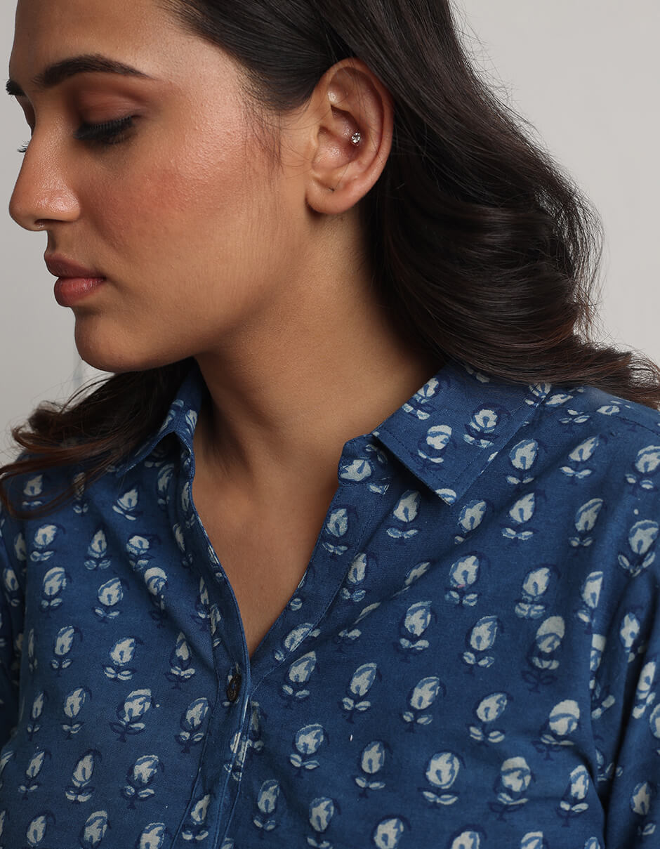 Natural dyed hand block printed casual shirt