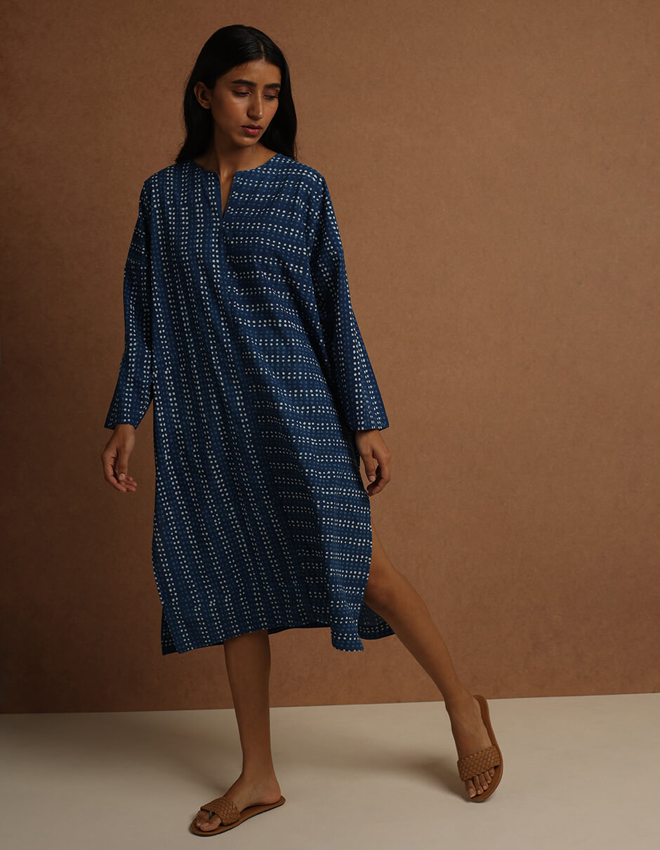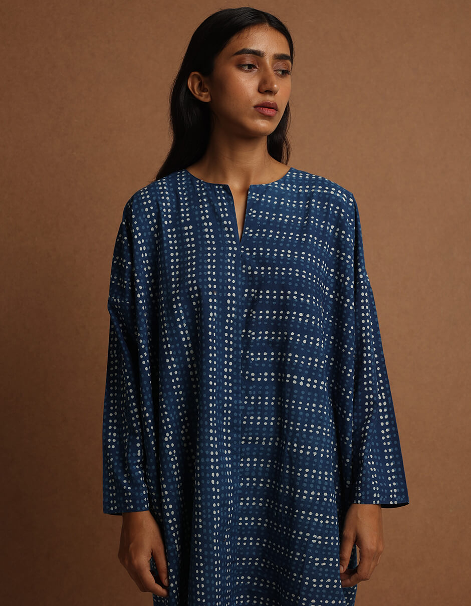 Cotton Indigo Hand block printed blue loose Antifit Kurta