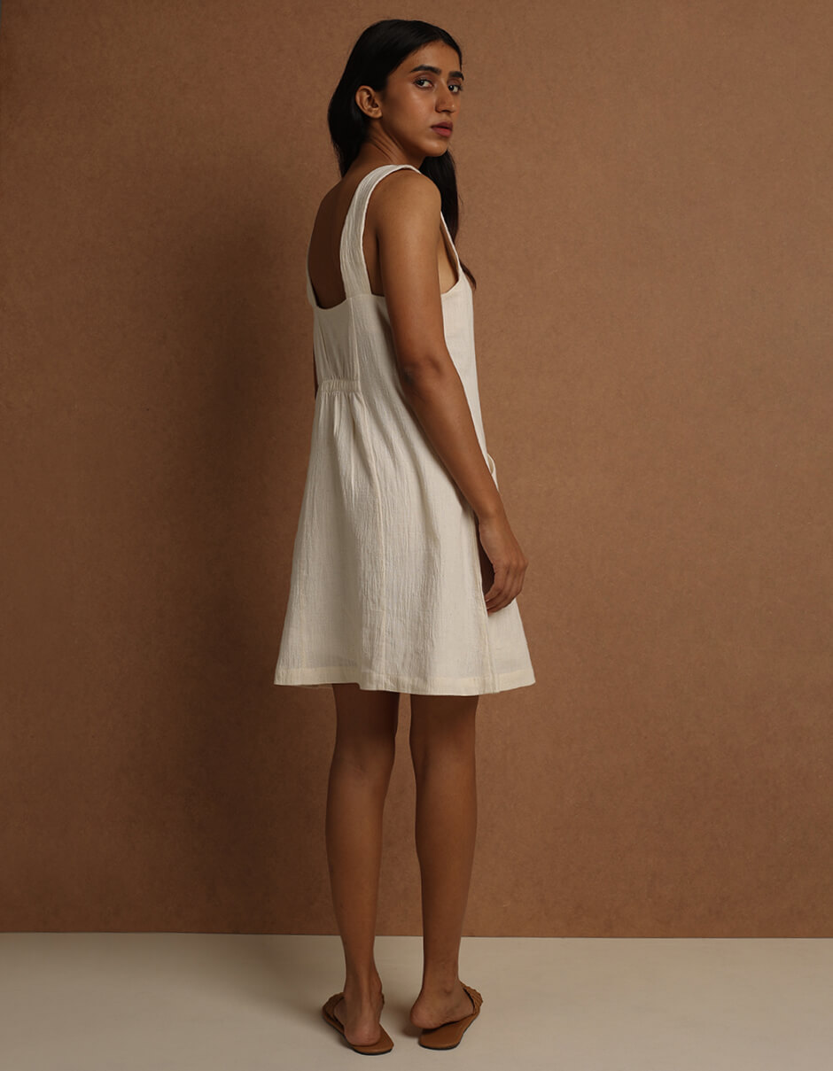 A line strapped lined kala cotton dress